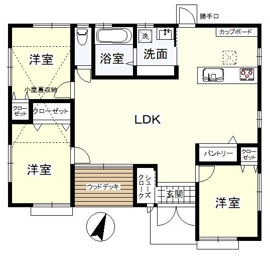 ★3LDK+小屋裏収納の平屋建て